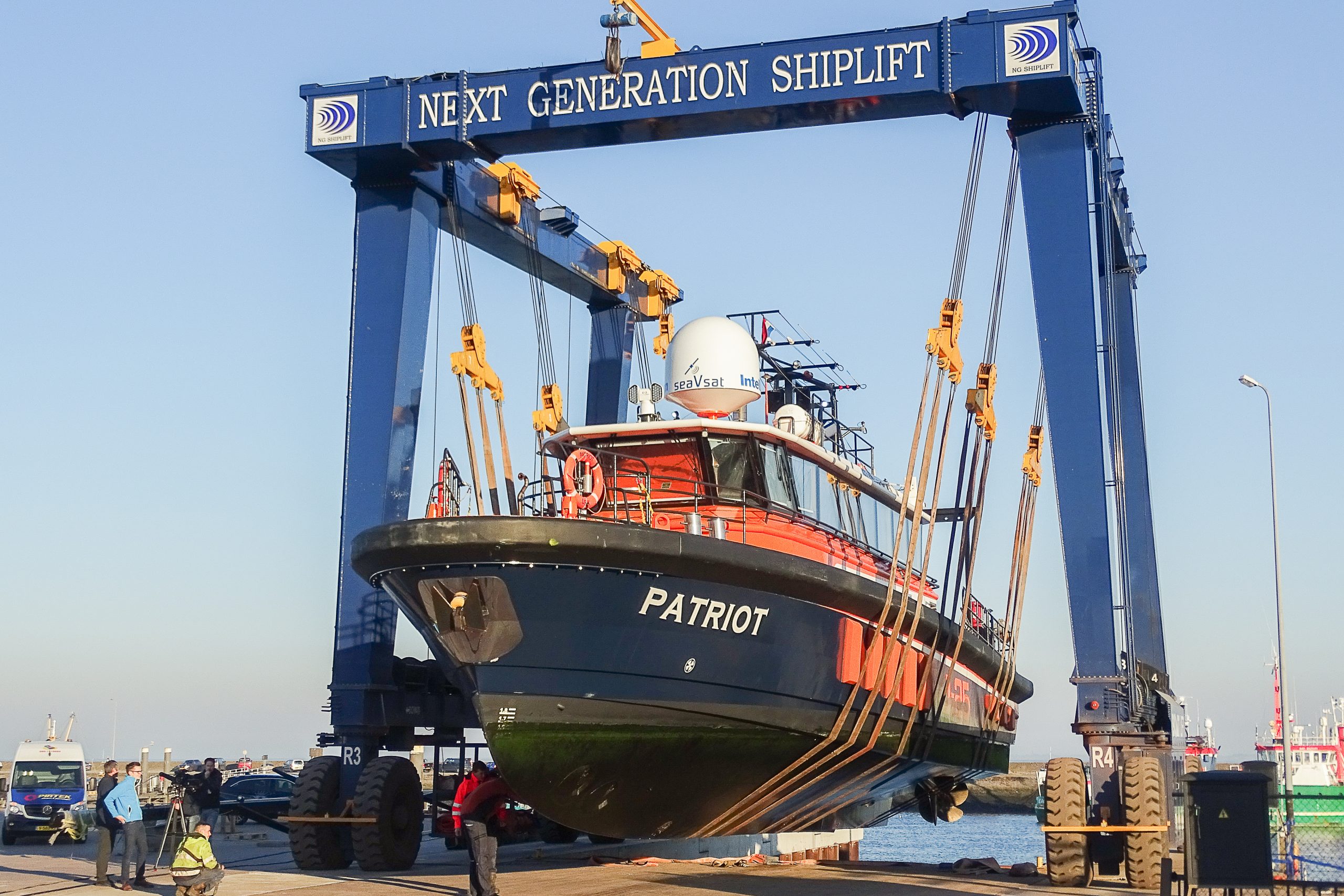 Dankzij onze eigen moderne scheepslift kunnen we vlot inspelen op servicevragen van onze klanten. De lift is geschikt voor het hijsen van o.a. catamarans, visserijschepen, werkschepen, schepen van de zogenaamde bruine vloot. Met deze lift hijsen wij veilig, gecontroleerd, snel en vakkundig dankzij 8 lieren en 12 hijsbanden om het gewicht te verdelen.